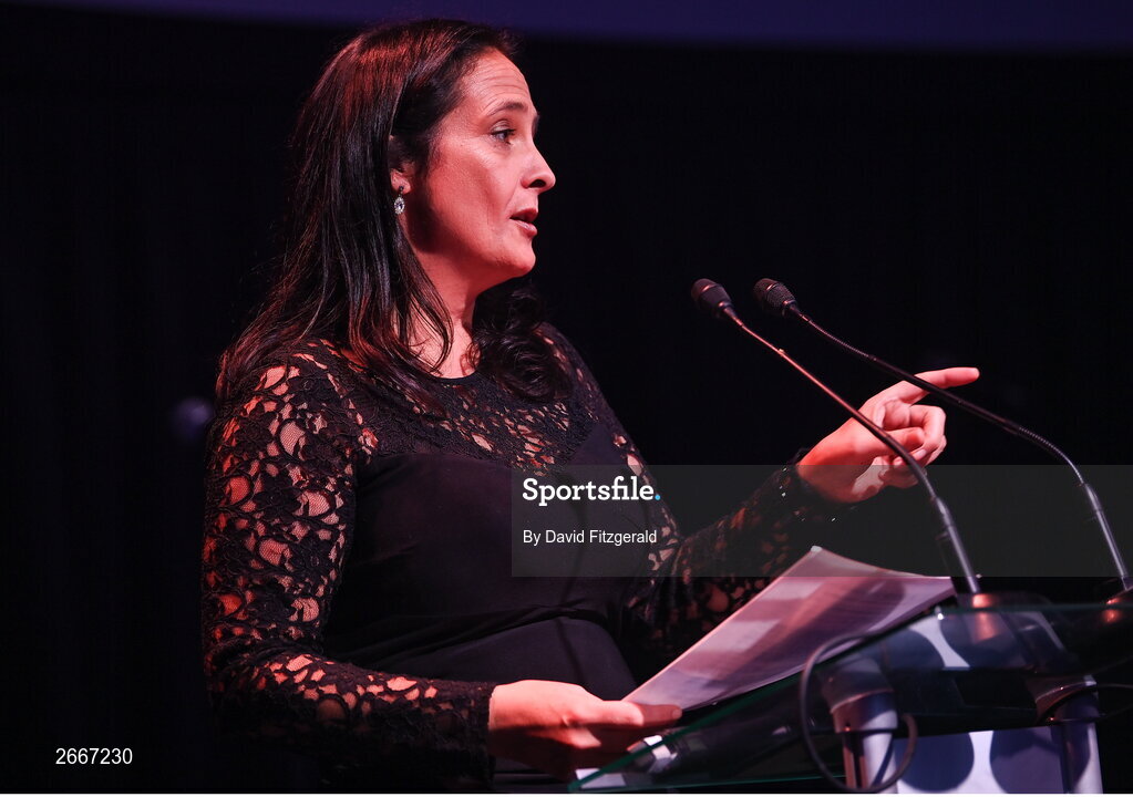 11 November 2023; Minister for Tourism, Culture, Arts, Gaeltacht, Sport and Media, Catherine Martin TD, speaking at the Team Ireland Olympic Ball at the Mansion House in Dublin. The event was a joint celebration of the brilliant performances of Team Ireland athletes at the European Games this summer, as well as the announcement of the winners of the Olympic Federation of Ireland Annual Awards. The event was attended by the Minister for Tourism, Culture, Arts, Gaeltacht, Sport and Media, Catherine Martin TD, Minister of State for Sport and Physical Education, Thomas Byrne TD, Olympic medallists, European Games athletes, Team Ireland Sponsors and Partners, Sport Ireland and the wider Olympic family. Photo by David Fitzgerald/Sportsfile