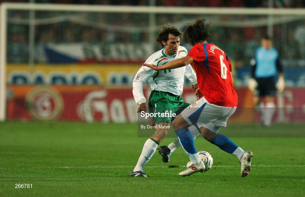 12 September 2007; Kevin Kilbane, Republic of Ireland, in action against Marek Jankulovski, Czech Republic. 2008 European Championship Qualifier, Czech Republic v Republic of Ireland, Sparta Prague Stadium, Prague, Czech Republic. Picture Credit: David Maher / SPORTSFILE