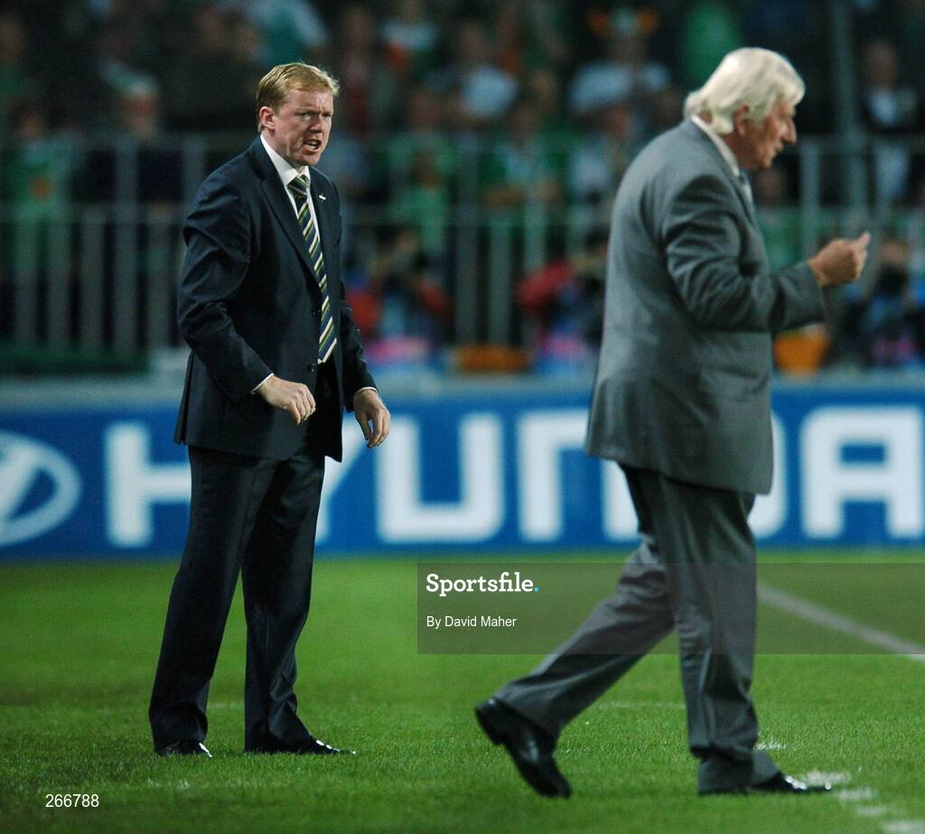 12 September 2007; Steve Staunton, Republic of Ireland manager, with Karel Bruckner, Czech Republic manager, during the game. 2008 European Championship Qualifier, Czech Republic v Republic of Ireland, Sparta Prague Stadium, Prague, Czech Republic. Picture Credit: David Maher / SPORTSFILE *** Local Caption ***