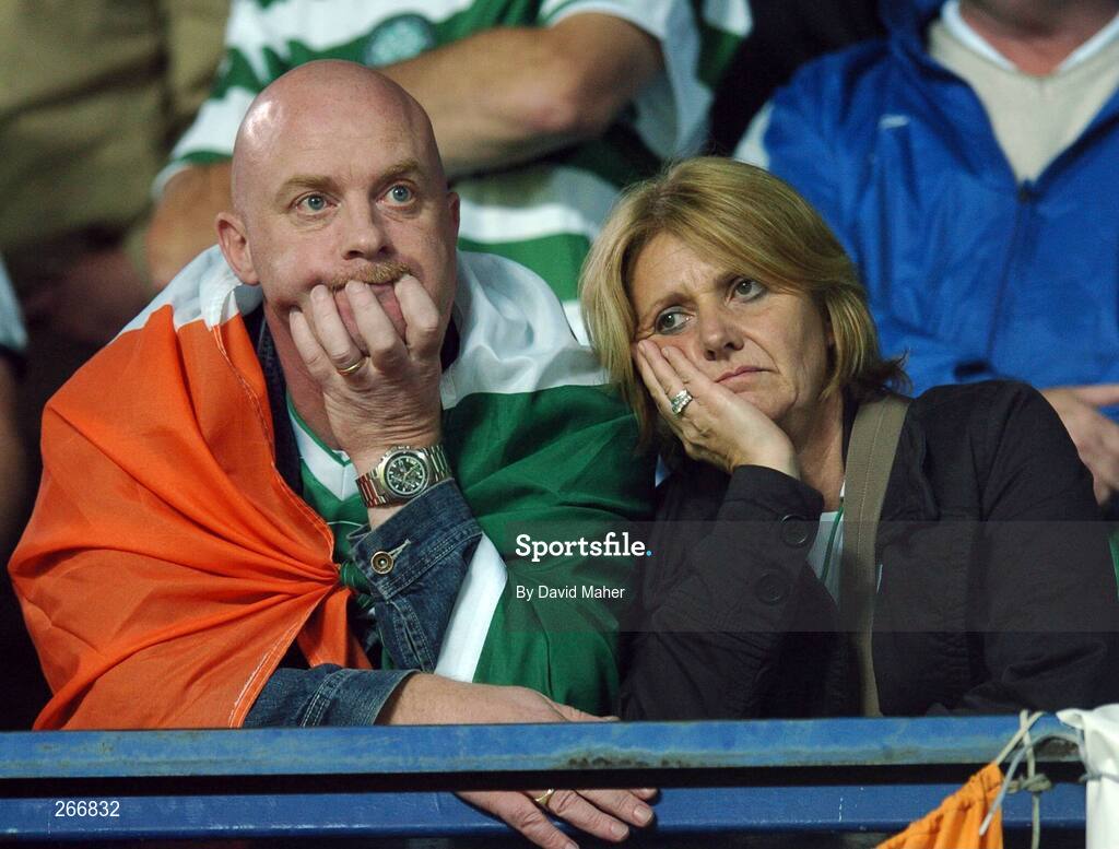 12 September 2007; Dejected Republic of Ireland supporters at the end of the game. 2008 European Championship Qualifier, Czech Republic v Republic of Ireland, Sparta Prague Stadium, Prague, Czech Republic. Picture credit: David Maher / SPORTSFILE *** Local Caption ***