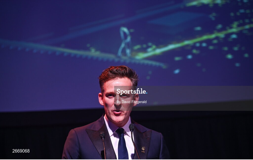 11 November 2023; Team Ireland 2024 Chef de Mission, Gavin Noble speaking at the Team Ireland Olympic Ball at the Mansion House in Dublin. The event was a joint celebration of the brilliant performances of Team Ireland athletes at the European Games this summer, as well as the announcement of the winners of the Olympic Federation of Ireland Annual Awards. The event was attended by the Minister for Tourism, Culture, Arts, Gaeltacht, Sport and Media, Catherine Martin TD, Minister of State for Sport and Physical Education, Thomas Byrne TD, Olympic medallists, European Games athletes, Team Ireland Sponsors and Partners, Sport Ireland and the wider Olympic family. Photo by David Fitzgerald/Sportsfile