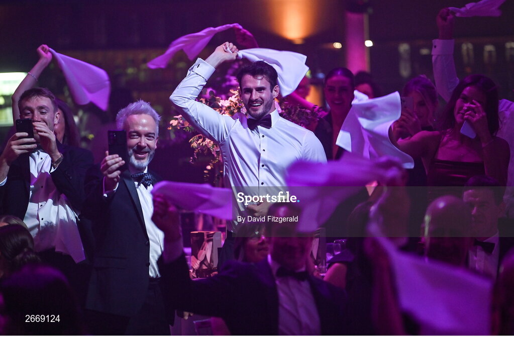 11 November 2023; The rugby 7s team sing along as team-mate Billy Dardis performs with The Galway Tenors at the Team Ireland Olympic Ball at the Mansion House in Dublin. The event was a joint celebration of the brilliant performances of Team Ireland athletes at the European Games this summer, as well as the announcement of the winners of the Olympic Federation of Ireland Annual Awards. The event was attended by the Minister for Tourism, Culture, Arts, Gaeltacht, Sport and Media, Catherine Martin TD, Minister of State for Sport and Physical Education, Thomas Byrne TD, Olympic medallists, European Games athletes, Team Ireland Sponsors and Partners, Sport Ireland and the wider Olympic family. Photo by David Fitzgerald/Sportsfile