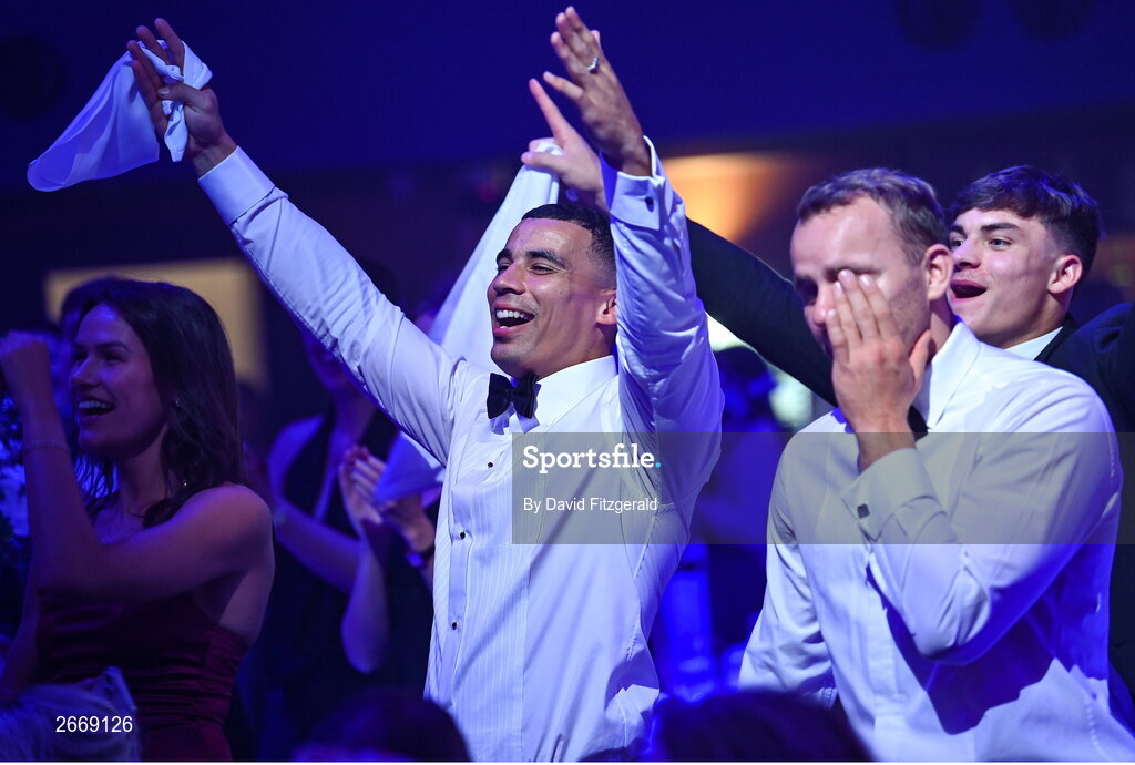 11 November 2023; The rugby 7s team sing along as team-mate Billy Dardis performs with The Galway Tenors at the Team Ireland Olympic Ball at the Mansion House in Dublin. The event was a joint celebration of the brilliant performances of Team Ireland athletes at the European Games this summer, as well as the announcement of the winners of the Olympic Federation of Ireland Annual Awards. The event was attended by the Minister for Tourism, Culture, Arts, Gaeltacht, Sport and Media, Catherine Martin TD, Minister of State for Sport and Physical Education, Thomas Byrne TD, Olympic medallists, European Games athletes, Team Ireland Sponsors and Partners, Sport Ireland and the wider Olympic family. Photo by David Fitzgerald/Sportsfile