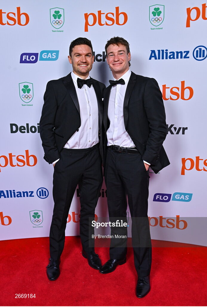 11 November 2023; Sam Curtis, left, and Noel Hendrick in attendance at the Team Ireland Olympic Ball at the Mansion House in Dublin. The event was a joint celebration of the brilliant performances of Team Ireland athletes at the European Games this summer, as well as the announcement of the winners of the Olympic Federation of Ireland Annual Awards. The event was attended by the Minister for Tourism, Culture, Arts, Gaeltacht, Sport and Media, Catherine Martin TD, Minister of State for Sport and Physical Education, Thomas Byrne TD, Olympic medallists, European Games athletes, Team Ireland Sponsors and Partners, Sport Ireland and the wider Olympic family. Photo by Brendan Moran/Sportsfile