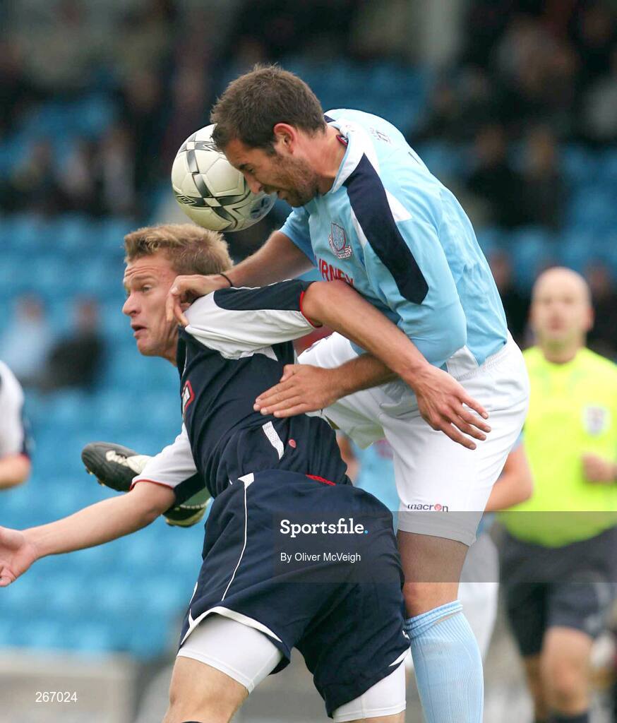 15 September 2007; Peter Thompson, Linfield, in action against Gary Haveron, Ballymena United. CIS Insurance Cup, Group A, Ballymena United v Linfield, The Showgrounds, Ballymena, Co. Antrim. Picture credit; Oliver McVeigh / SPORTSFILE