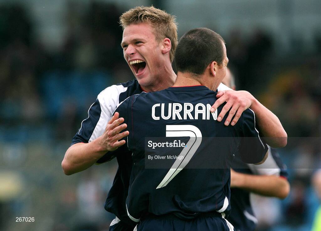 15 September 2007; Linfield's Peter Thompson celebrates with team-mate Damain Curran after scoring the first goal. CIS Insurance Cup, Group A, Ballymena United v Linfield, The Showgrounds, Ballymena, Co. Antrim. Picture credit; Oliver McVeigh / SPORTSFILE