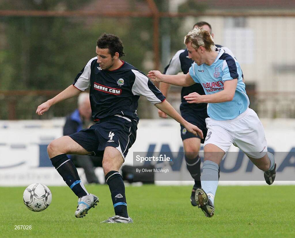 15 September 2007; Michael Gault, Linfield, in action against Aidan Watson, Ballymena United. CIS Insurance Cup, Group A, Ballymena United v Linfield, The Showgrounds, Ballymena, Co. Antrim. Picture credit; Oliver McVeigh / SPORTSFILE