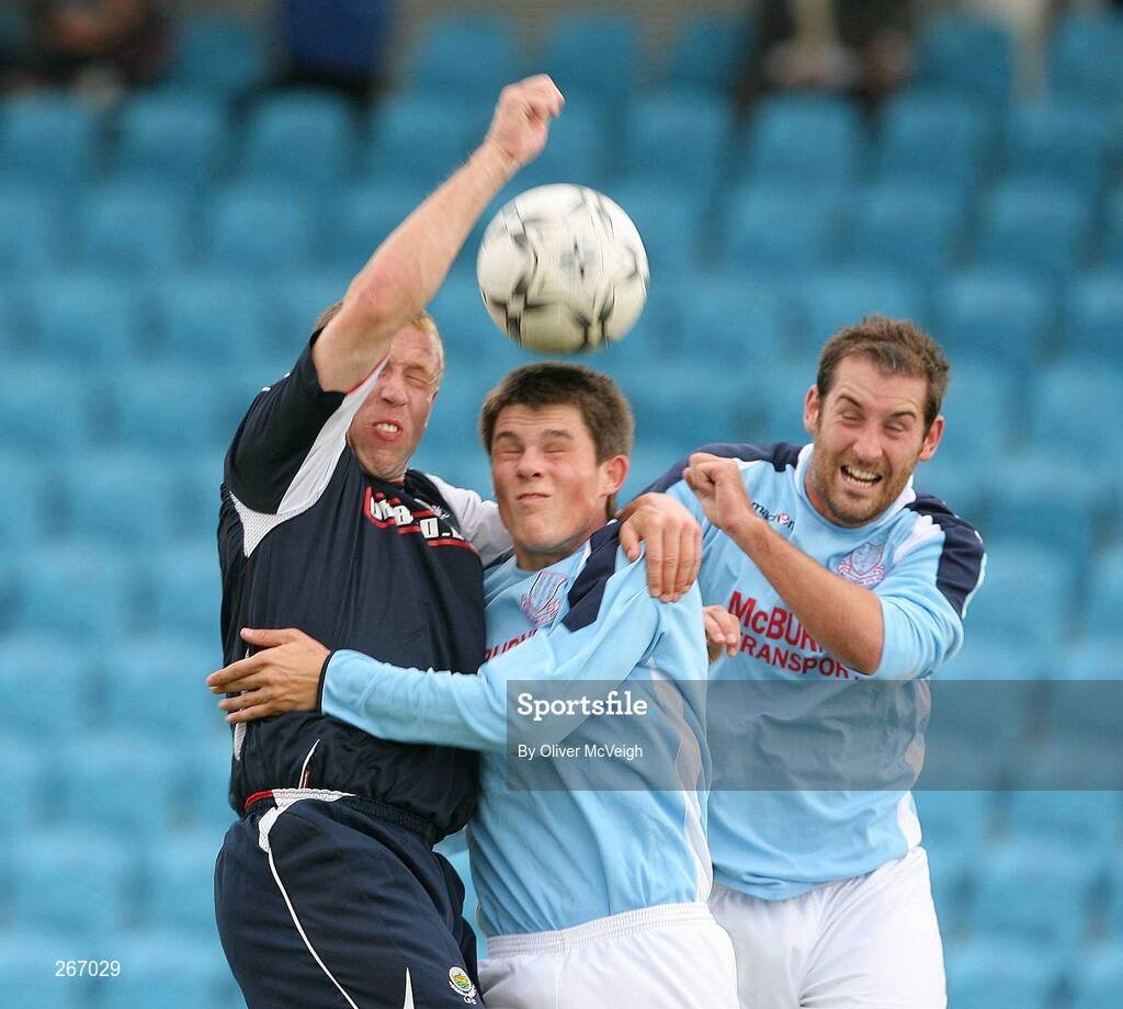 15 September 2007; Mark Dickson, Linfield, in action against Craig McLean and Gary Haveron, Ballymena United. CIS Insurance Cup, Group A, Ballymena United v Linfield, The Showgrounds, Ballymena, Co. Antrim. Picture credit; Oliver McVeigh / SPORTSFILE