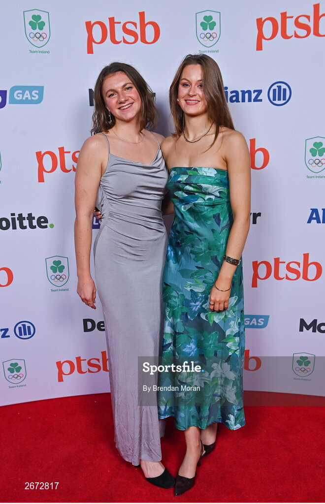 11 November 2023; Hanna D'Aughton, left, and Isobel Radford-Dodd in attendance at the Team Ireland Olympic Ball at the Mansion House in Dublin. The event was a joint celebration of the brilliant performances of Team Ireland athletes at the European Games this summer, as well as the announcement of the winners of the Olympic Federation of Ireland Annual Awards. The event was attended by the Minister for Tourism, Culture, Arts, Gaeltacht, Sport and Media, Catherine Martin TD, Minister of State for Sport and Physical Education, Thomas Byrne TD, Olympic medallists, European Games athletes, Team Ireland Sponsors and Partners, Sport Ireland and the wider Olympic family. Photo by Brendan Moran/Sportsfile