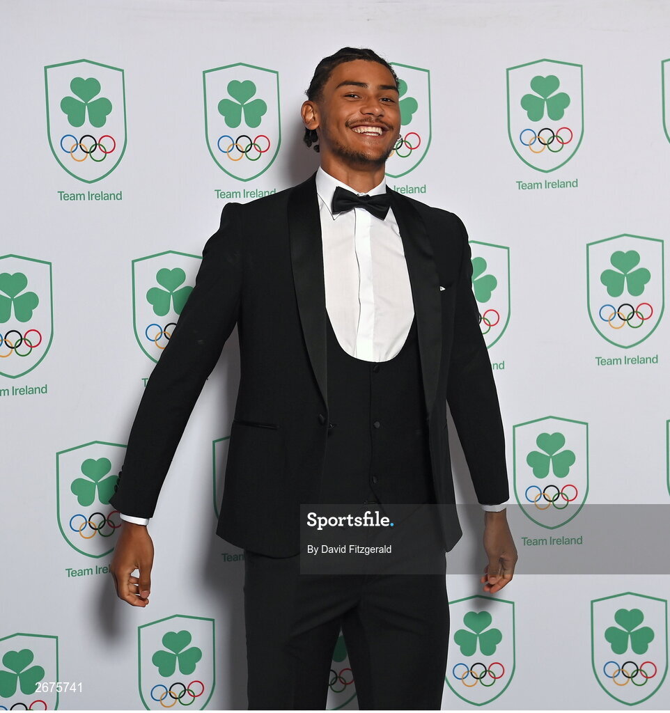 11 November 2023; Reece Ademola in attendance at the Team Ireland Olympic Ball at the Mansion House in Dublin. The event was a joint celebration of the brilliant performances of Team Ireland athletes at the European Games this summer, as well as the announcement of the winners of the Olympic Federation of Ireland Annual Awards. The event was attended by the Minister for Tourism, Culture, Arts, Gaeltacht, Sport and Media, Catherine Martin TD, Minister of State for Sport and Physical Education, Thomas Byrne TD, Olympic medallists, European Games athletes, Team Ireland Sponsors and Partners, Sport Ireland and the wider Olympic family. Photo by David Fitzgerald/Sportsfile