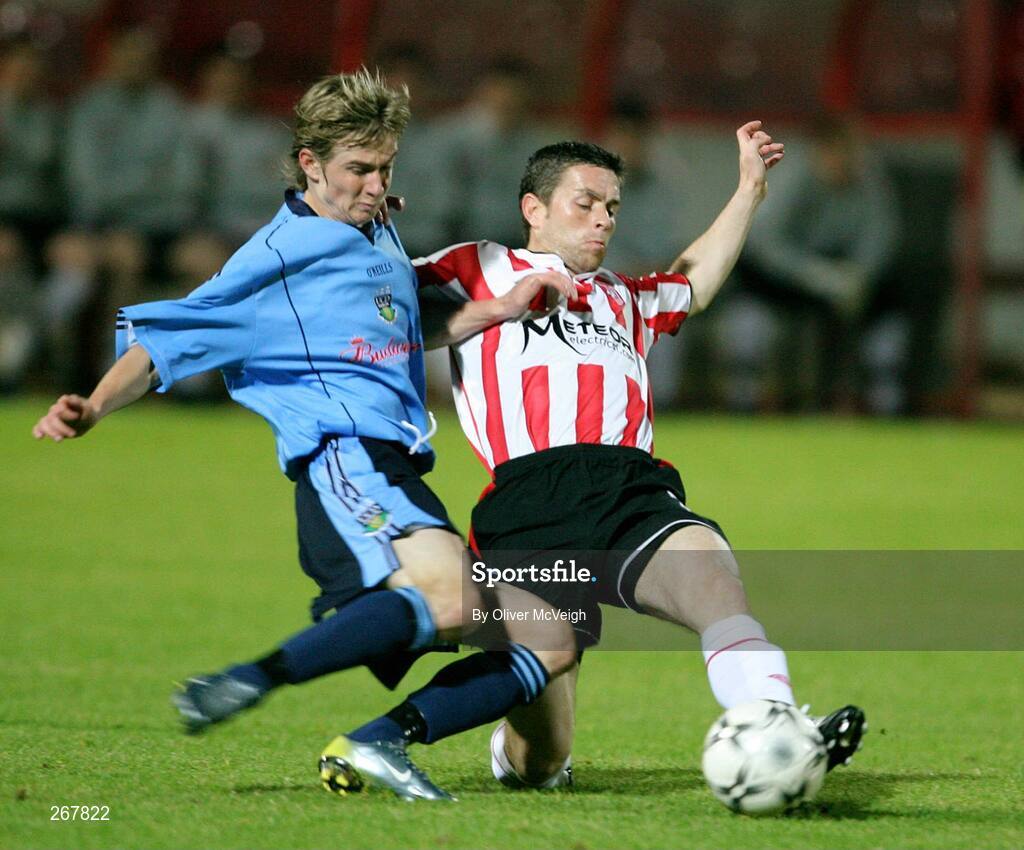 21 September 2007; Eddie McCallion, Derry City, in action against Ronan Finn, UCD. FAI Ford Cup Quarter Final, Derry City v UCD, Brandywell, Derry. Picture credit; Oliver McVeigh / SPORTSFILE