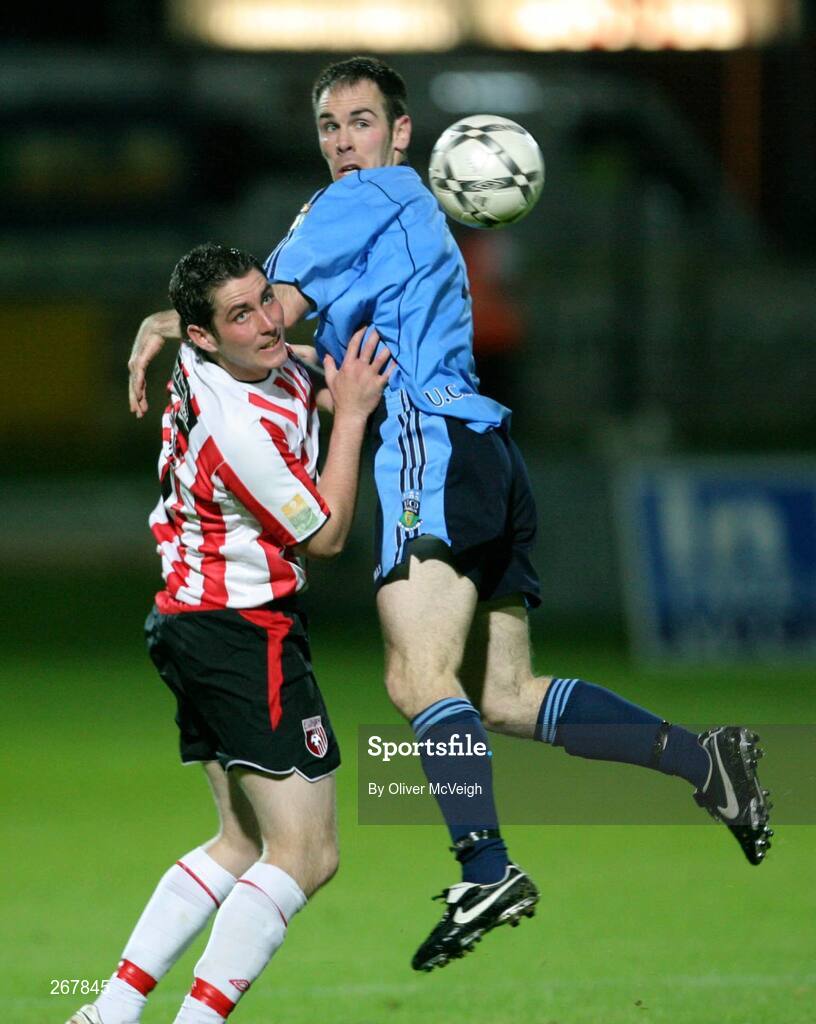 21 September 2007; Ruairdhi Higgins, Derry City, in action against Pat McWalter, UCD. FAI Ford Cup Quarter Final, Derry City v UCD, Brandywell, Derry. Picture credit; Oliver McVeigh / SPORTSFILE