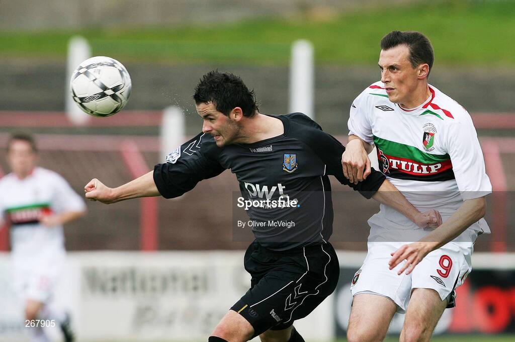 22 September 2007; Phillip McBirney, Armagh City, in action against Michael Halliday, Glentoran. Carnegie Premier League, Glentoran v Armagh City. The Oval, Belfast, Co. Antrim. Picture credit; Oliver McVeigh / SPORTSFILE
