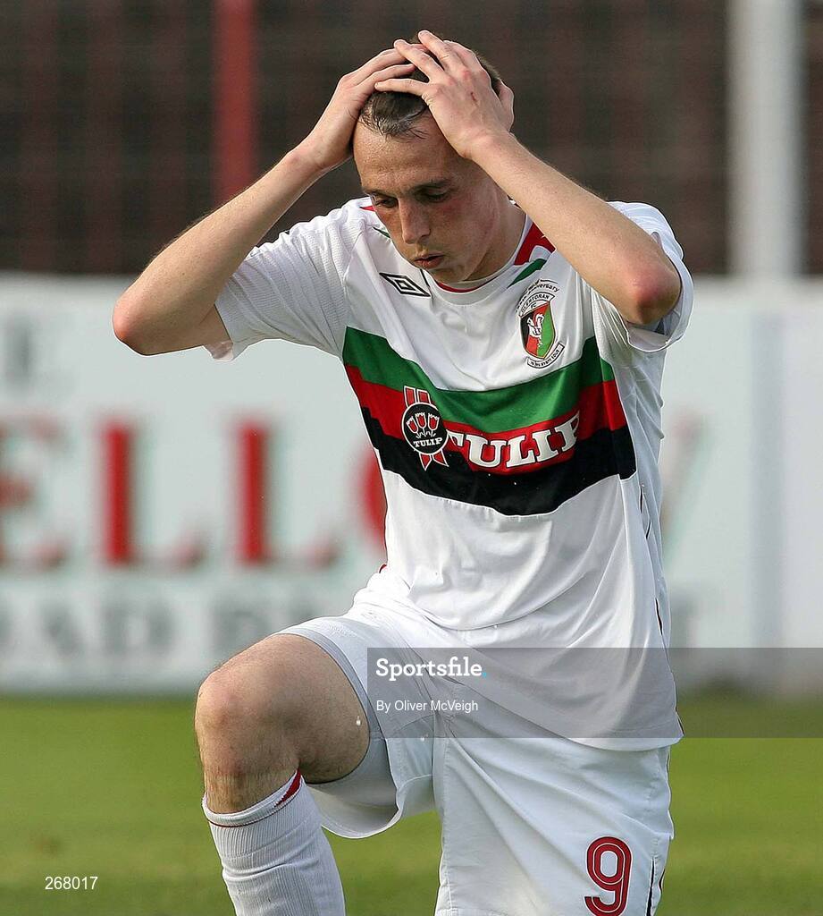 22 September 2007; Michael Halliday, Glentoran,cant believe he missed a golden opportunity to score. Carnegie Premier League, Glentoran v Armagh City. The Oval, Belfast, Co. Antrim. Picture credit; Oliver McVeigh / SPORTSFILE