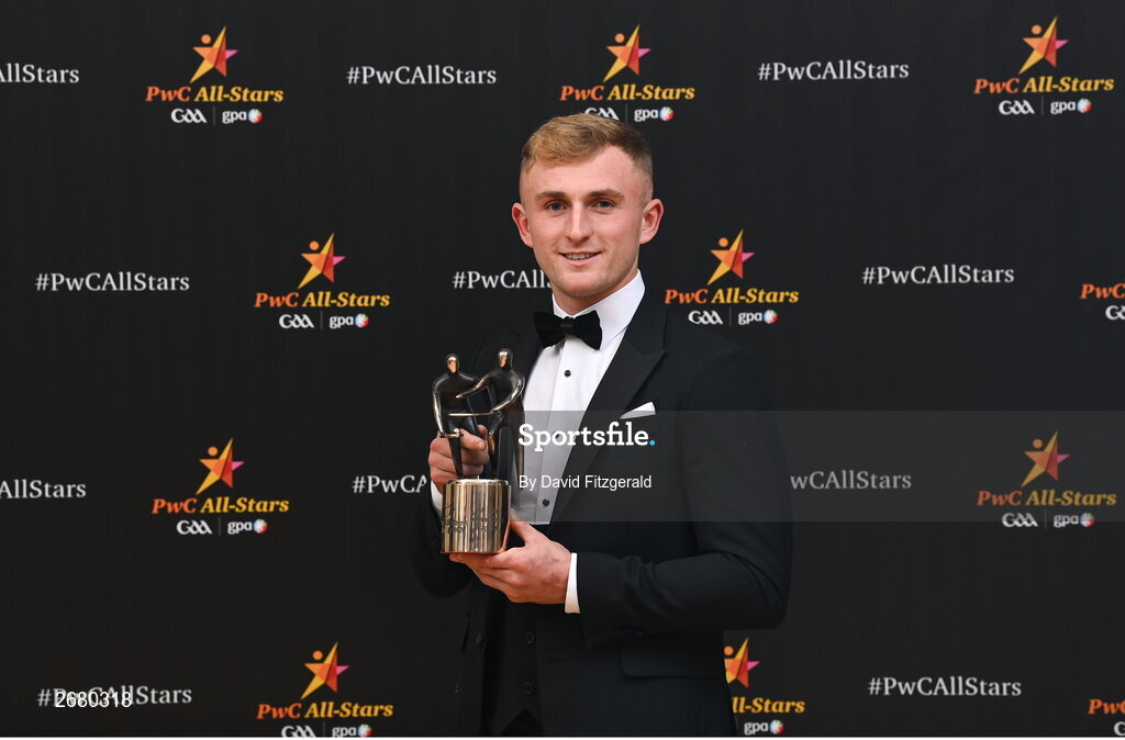 17 November 2023; Mikey Butler of Kilkenny with his PwC GAA/GPA All-Star Award during the 2023 PwC GAA/GPA All-Star Awards at the RDS in Dublin. Photo by David Fitzgerald/Sportsfile