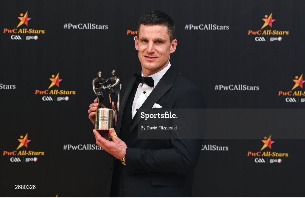 17 November 2023; John Conlan of Clare with his PwC GAA/GPA All-Star Award during the 2023 PwC GAA/GPA All-Star Awards at the RDS in Dublin. Photo by David Fitzgerald/Sportsfile