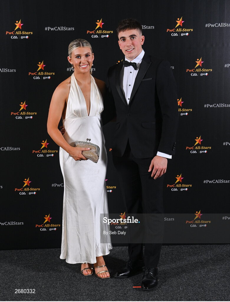 17 November 2023; Ciaran Joyce of Cork and Rosie Corkery on arrival at the 2023 PwC GAA/GPA All-Star Awards at the RDS in Dublin. Photo by Seb Daly/Sportsfile