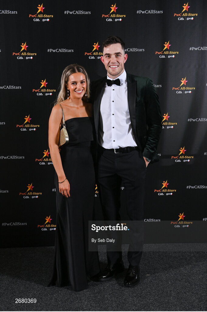 17 November 2023; Paddy Deegan of Kilkenny and Orla Sweeney on arrival at the 2023 PwC GAA/GPA All-Star Awards at the RDS in Dublin. Photo by Seb Daly/Sportsfile
