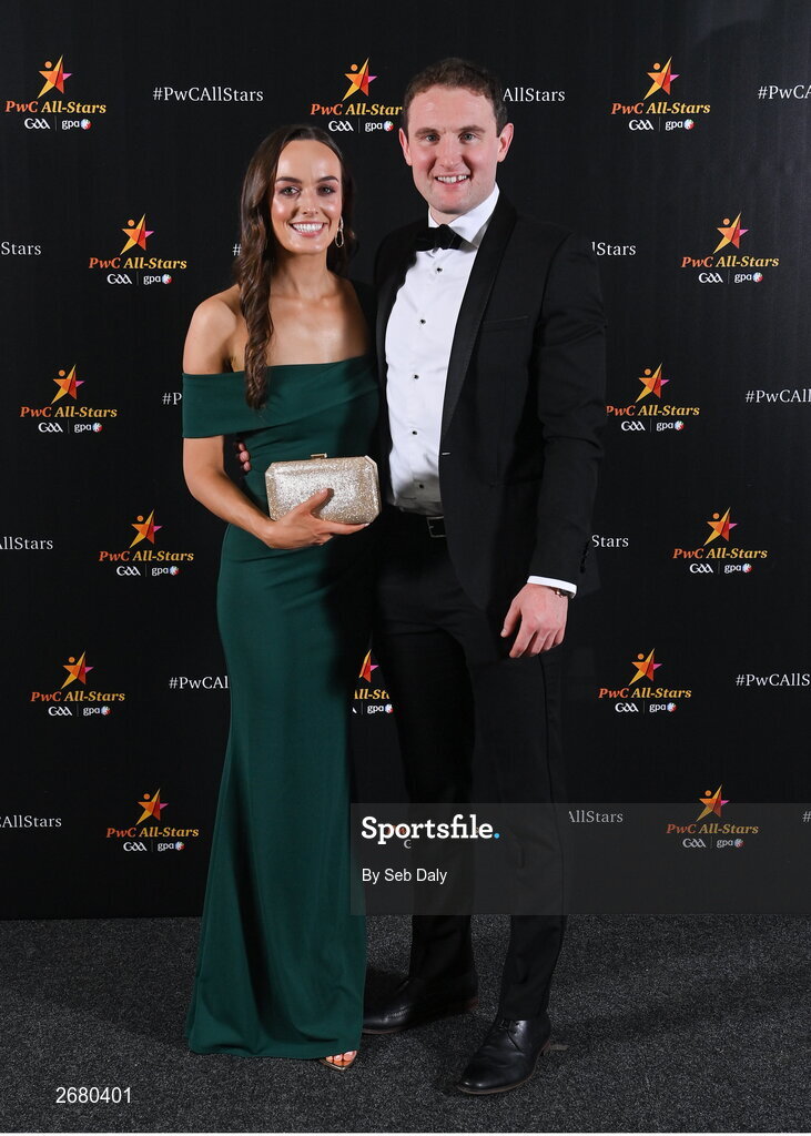 17 November 2023; Tadhg Morley of Kerry and Ciara Brannock on arrival at the 2023 PwC GAA/GPA All-Star Awards at the RDS in Dublin. Photo by Seb Daly/Sportsfile