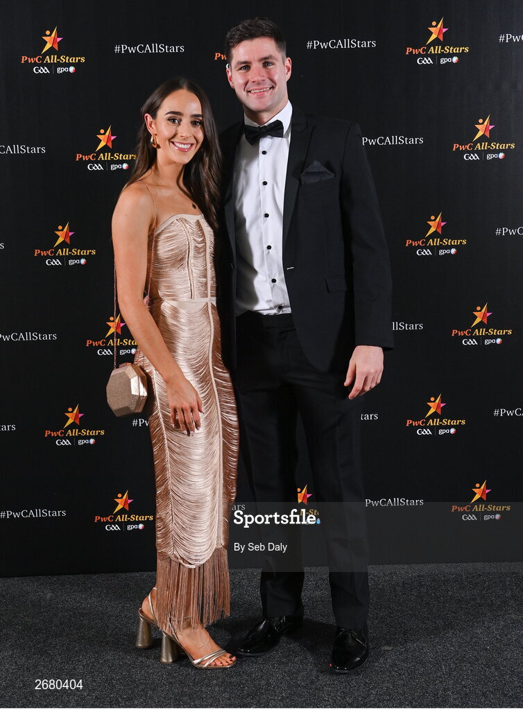 17 November 2023; Brendan McCole of Donegal and Clare Fagan on arrival at the 2023 PwC GAA/GPA All-Star Awards at the RDS in Dublin. Photo by Seb Daly/Sportsfile