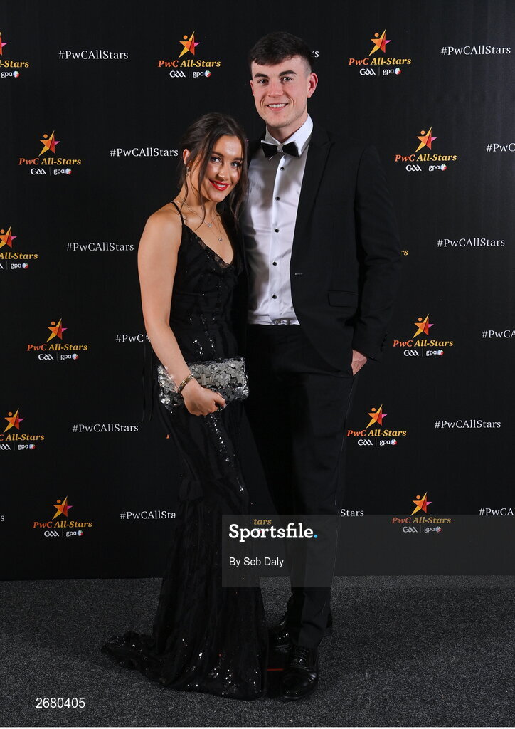 17 November 2023; Conor Carroll of Roscommon and Jade Casey on arrival at the 2023 PwC GAA/GPA All-Star Awards at the RDS in Dublin. Photo by Seb Daly/Sportsfile