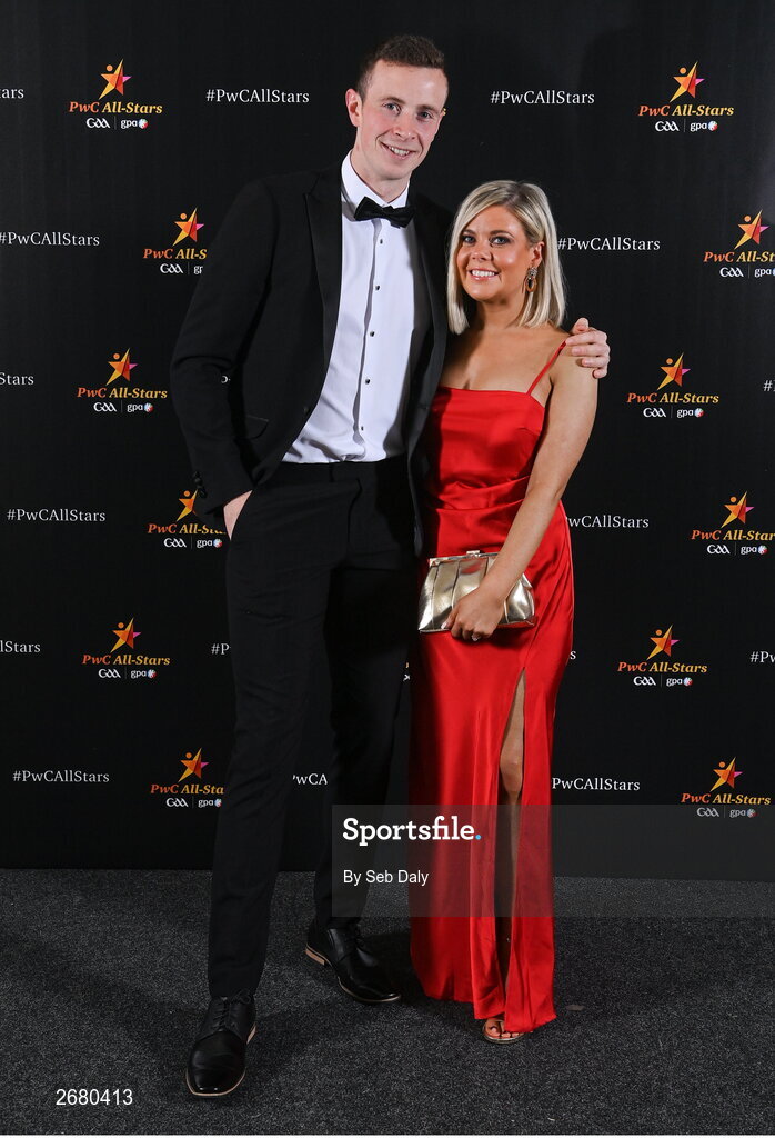 17 November 2023; Shane Ryan of Kerry and Emer McCarthy on arrival at the 2023 PwC GAA/GPA All-Star Awards at the RDS in Dublin. Photo by Seb Daly/Sportsfile