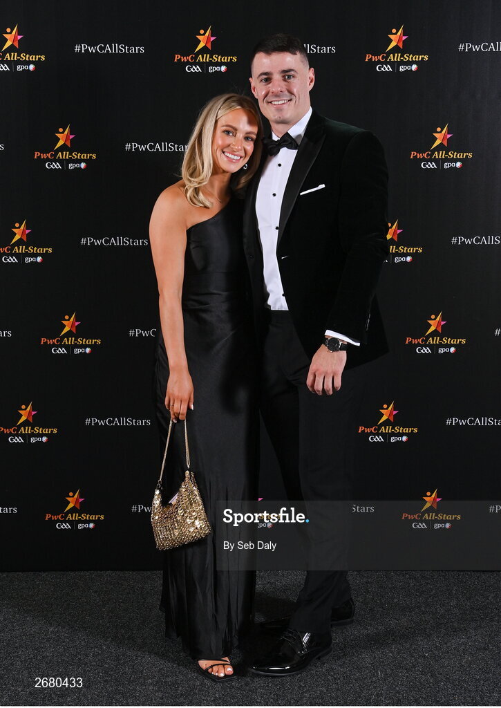17 November 2023; Brian Howard of Dublin and Emer Nolan on arrival at the 2023 PwC GAA/GPA All-Star Awards at the RDS in Dublin. Photo by Seb Daly/Sportsfile