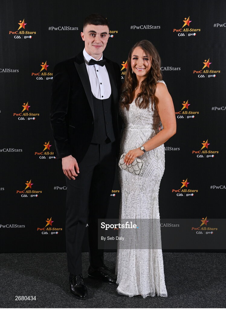 17 November 2023; Seán O’Shea of Kerry and Molly O'Brien on arrival at the 2023 PwC GAA/GPA All-Star Awards at the RDS in Dublin. Photo by Seb Daly/Sportsfile