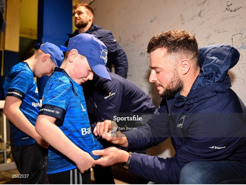 18 November 2023; Leinster player Robbie Henshaw with supporters in Autograph Alley before the United Rugby Championship match between Leinster and Scarlets at the RDS Arena in Dublin. Photo by Sam Barnes/Sportsfile