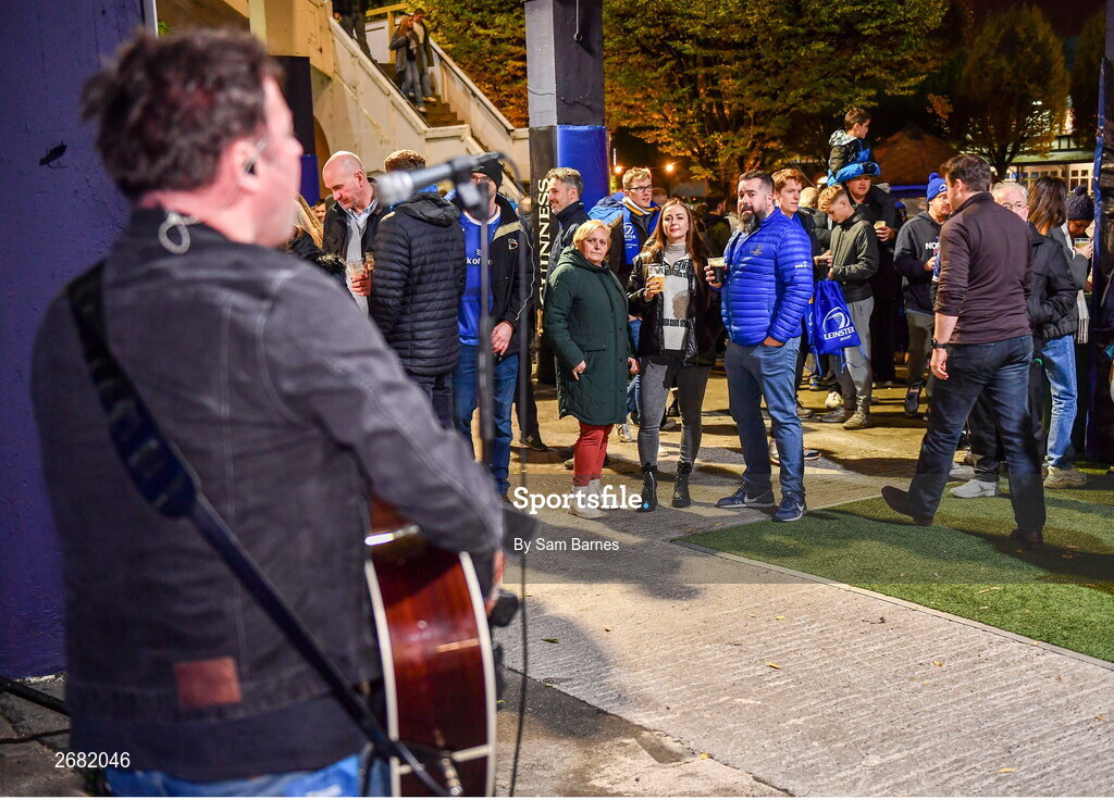 18 November 2023; A musician performs behind the Anglesea Stand before the United Rugby Championship match between Leinster and Scarlets at the RDS Arena in Dublin. Photo by Sam Barnes/Sportsfile