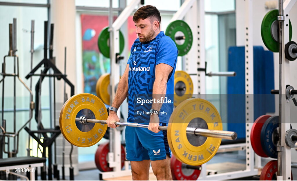 20 November 2023; Hugo Keenan during a gym session on the Leinster Rugby 12 Counties Tour at the South East Technological University in Carlow. Photo by Harry Murphy/Sportsfile