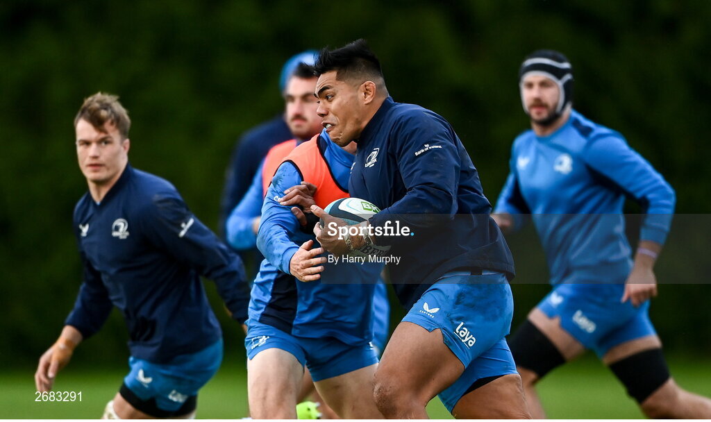 20 November 2023; Michael Ala'alatoa during a squad training session on the Leinster Rugby 12 Counties Tour at Kilkenny College in Kilkenny. Photo by Harry Murphy/Sportsfile