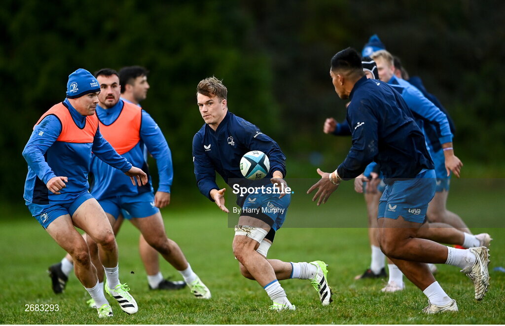 20 November 2023; Josh van der Flier, centre, during a squad training session on the Leinster Rugby 12 Counties Tour at Kilkenny College in Kilkenny. Photo by Harry Murphy/Sportsfile