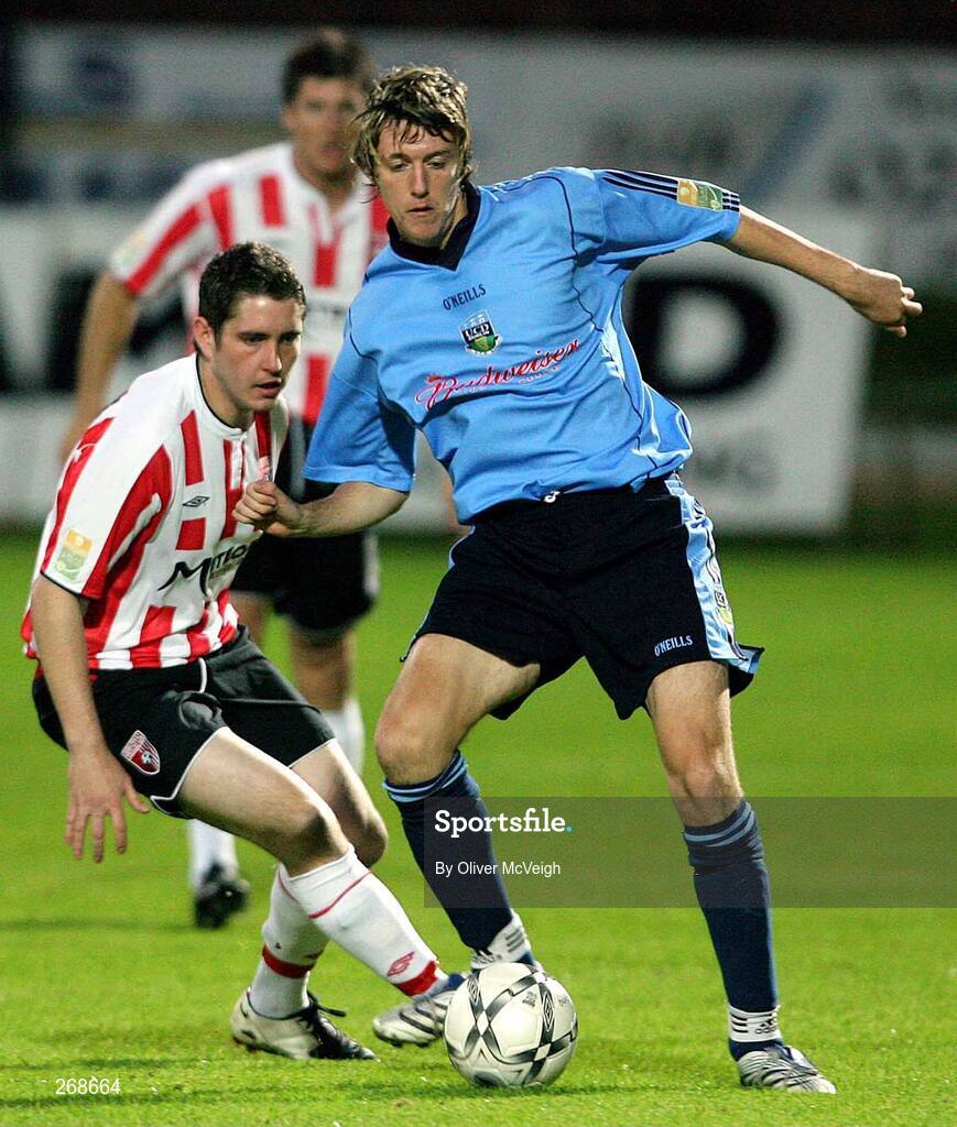 21 September 2007; Shane McFaul, UCD, in action against Ruairdhi Higgins, Derry City. FAI Ford Cup Quarter Final, Derry City v UCD, Brandywell, Derry. Picture credit; Oliver McVeigh / SPORTSFILE