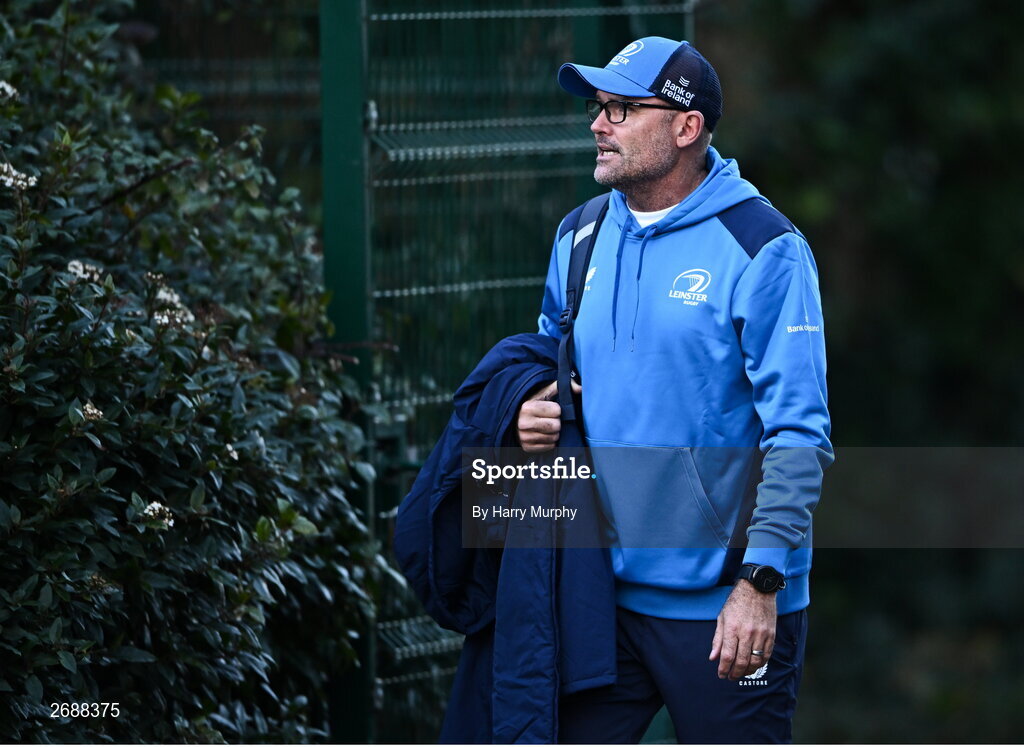 27 November 2023; Leinster senior coach Jacques Nienaber arrives for a Leinster Rugby squad training at UCD in Dublin. Photo by Harry Murphy/Sportsfile