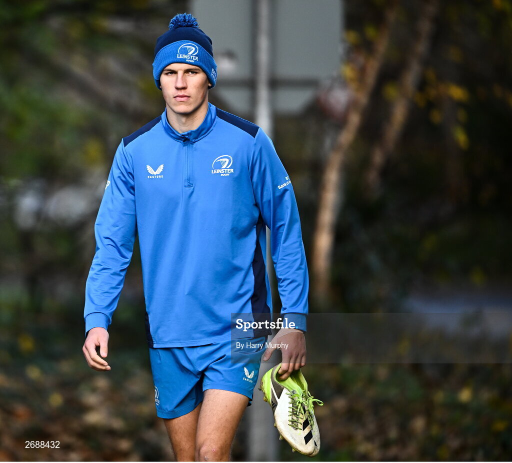 27 November 2023; Sam Prendergast during a Leinster Rugby squad training at UCD in Dublin. Photo by Harry Murphy/Sportsfile