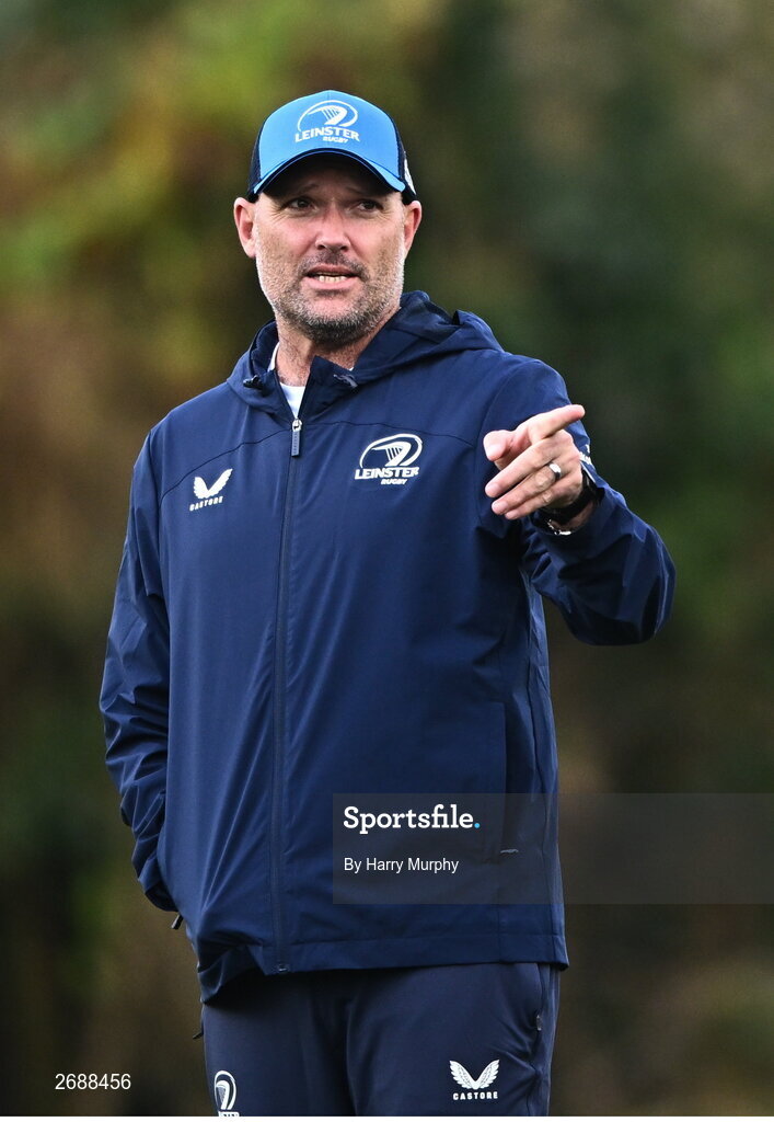 27 November 2023; Senior coach Jacques Nienaber during a Leinster Rugby squad training at UCD in Dublin. Photo by Harry Murphy/Sportsfile