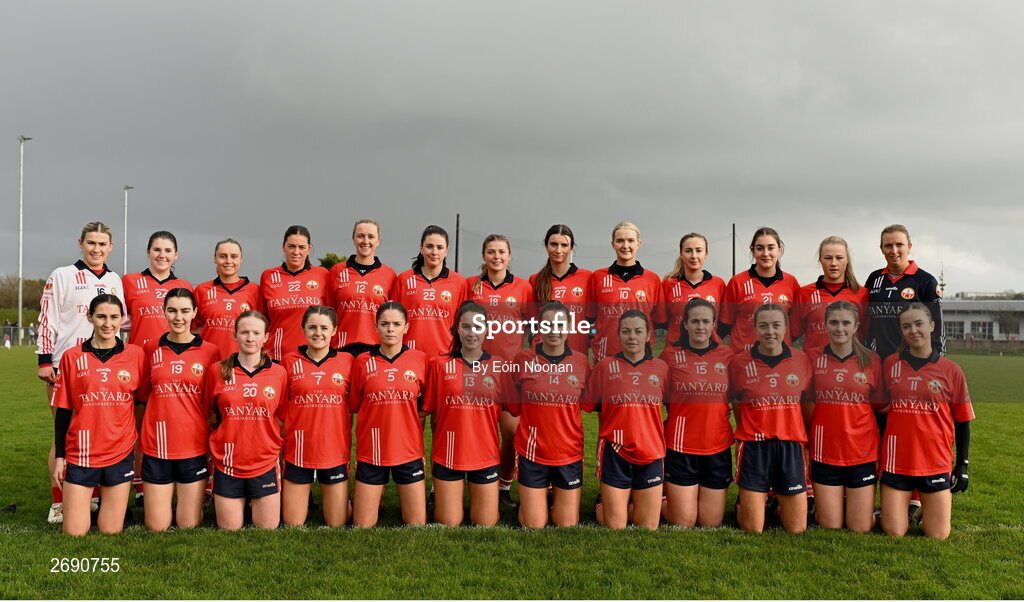 2 December 2023; The O'Donovan Rossa squad before the Currentaccount.ie All-Ireland Ladies Junior Club Championship semi-final match between O’Donovan Rossa of Cork and Gusserane of Wexford at O’Donovan Rossa GAA, Cork. Photo by Eóin Noonan/Sportsfile