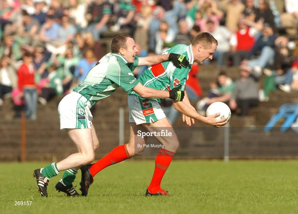 30 September 2007; Gerard Grady, Ballina Stephenites, in action against Kevin Deignan, Charlestown. Mayo Senior Football Championship Final, Ballina Stephenites v Charlestown, McHale Park, Castlebar, Co. Mayo. Picture credit; Pat Murphy / SPORTSFILE