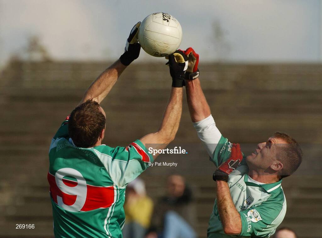30 September 2007; David Brady, Ballina Stephenites, in action against Sean Lenehan, Charlestown. Mayo Senior Football Championship Final, Ballina Stephenites v Charlestown, McHale Park, Castlebar, Co. Mayo. Picture credit; Pat Murphy / SPORTSFILE