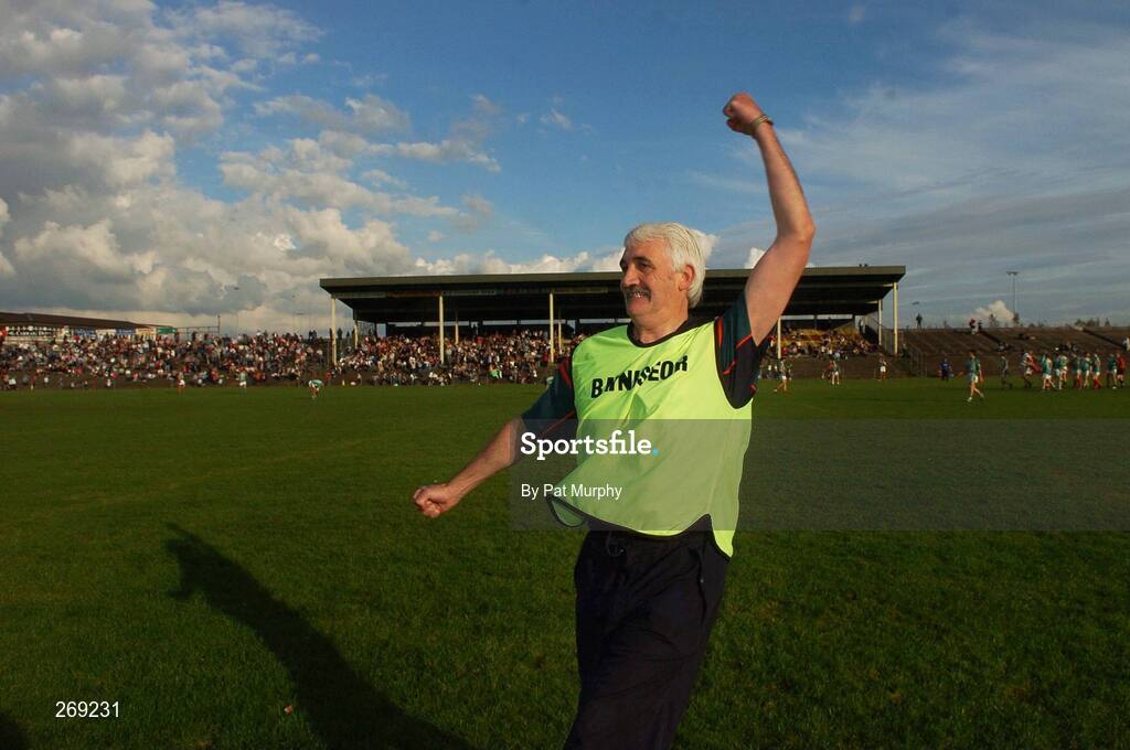 30 September 2007; Ballina Stephenites manager Liam Higgins celebrates at the final whistle. Mayo Senior Football Championship Final, Ballina Stephenites v Charlestown, McHale Park, Castlebar, Co. Mayo. Picture credit; Pat Murphy / SPORTSFILE