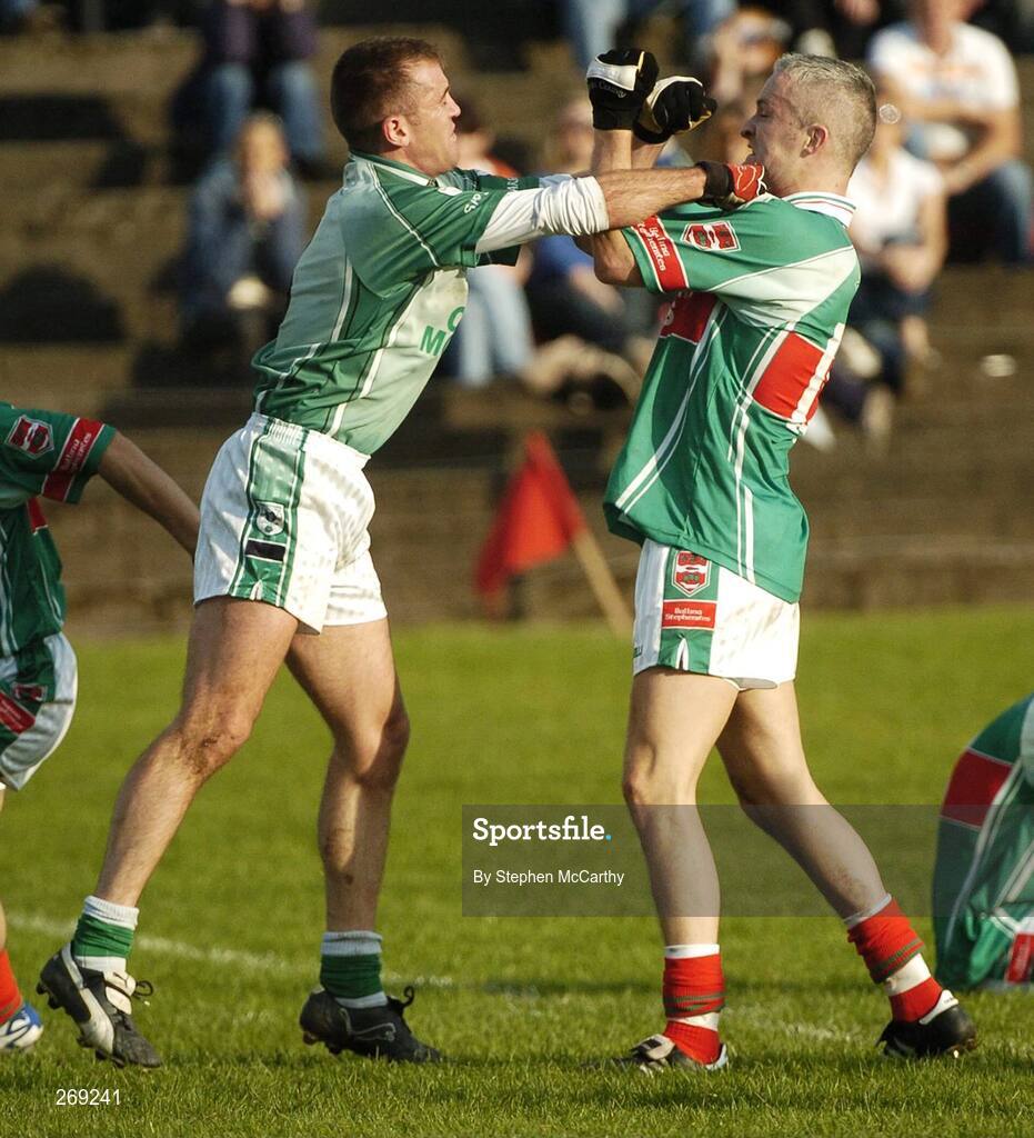 30 September 2007; Liam Brady, Ballina Stephenites, right, and Sean Lenehan, Charlestown, tussel off the ball. Mayo Senior Football Championship Final, Ballina Stephenites v Charlestown, McHale Park, Castlebar, Co. Mayo. Picture credit; Stephen McCarthy / SPORTSFILE
