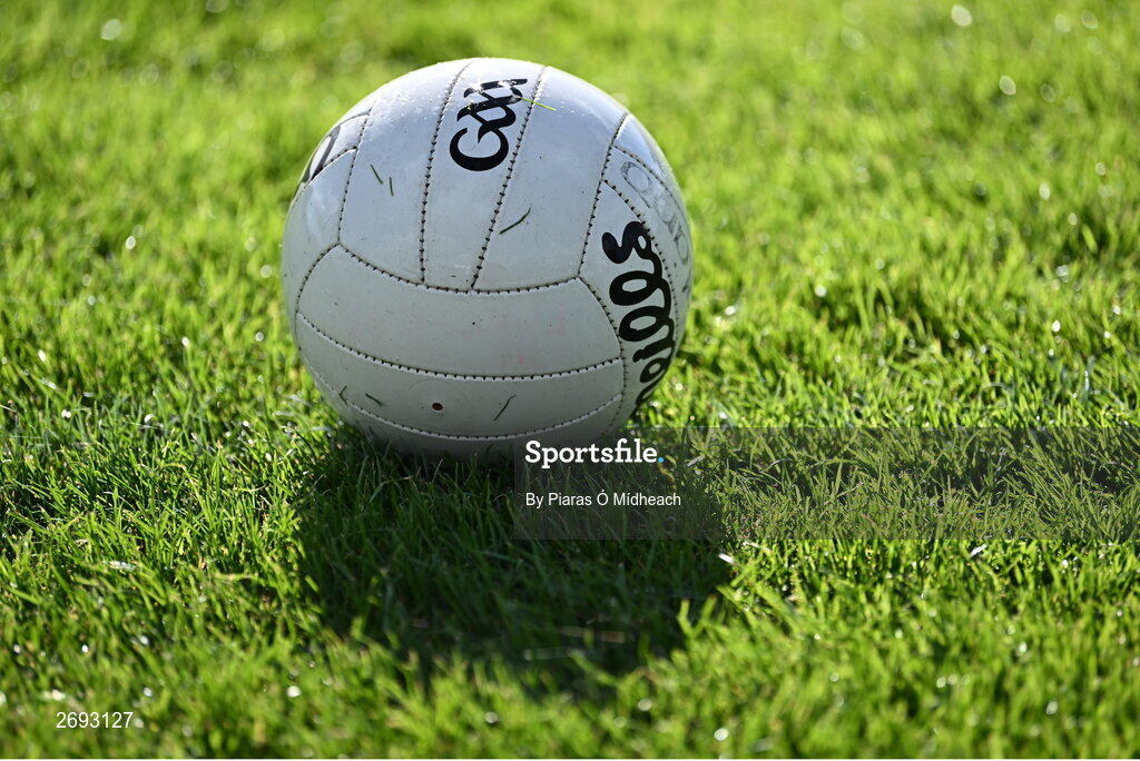 22 October 2023; A general view of a match ball before the Kildare County Intermediate Club Football Championship final between Castledermot and Allenwood at Netwatch Cullen Park in Carlow. Photo by Piaras Ó Mídheach/Sportsfile