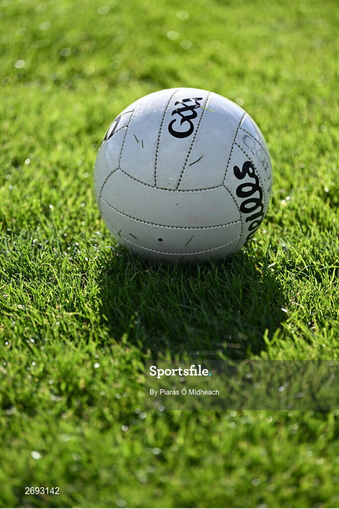 22 October 2023; A general view of a match ball before the Kildare County Intermediate Club Football Championship final between Castledermot and Allenwood at Netwatch Cullen Park in Carlow. Photo by Piaras Ó Mídheach/Sportsfile