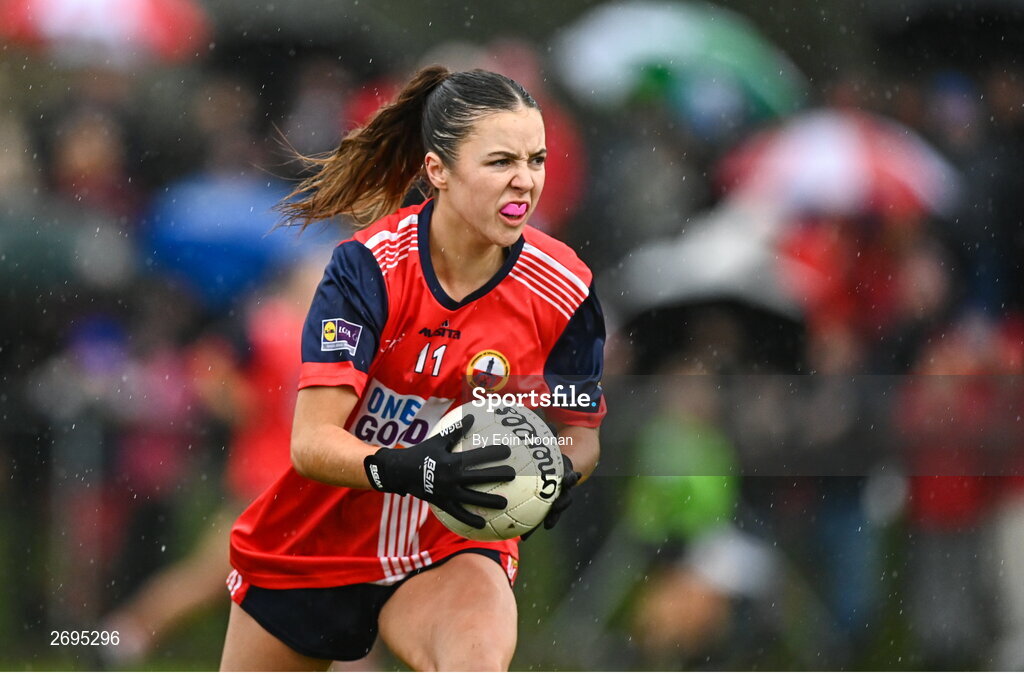 2 December 2023; Emma Hurley of O'Donovan Rossa during the Currentaccount.ie All-Ireland Ladies Junior Club Championship semi-final match between O’Donovan Rossa of Cork and Gusserane of Wexford at O’Donovan Rossa GAA, Cork. Photo by Eóin Noonan/Sportsfile