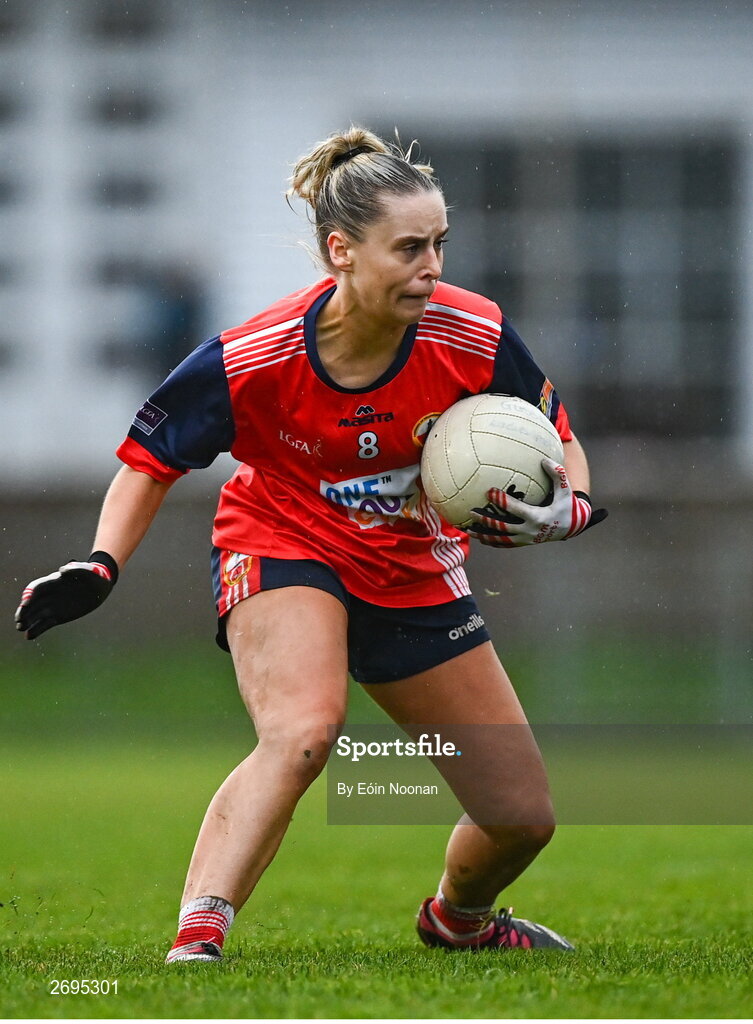 2 December 2023; Laura O'Mahony of O'Donovan Rossa during the Currentaccount.ie All-Ireland Ladies Junior Club Championship semi-final match between O’Donovan Rossa of Cork and Gusserane of Wexford at O’Donovan Rossa GAA, Cork. Photo by Eóin Noonan/Sportsfile