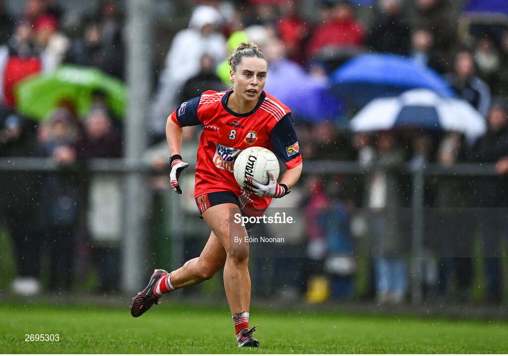 2 December 2023; Laura O'Mahony of O'Donovan Rossa during the Currentaccount.ie All-Ireland Ladies Junior Club Championship semi-final match between O’Donovan Rossa of Cork and Gusserane of Wexford at O’Donovan Rossa GAA, Cork. Photo by Eóin Noonan/Sportsfile