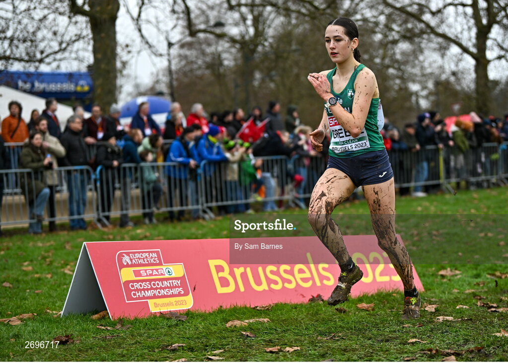 10 December 2023; Amy Greene of Ireland competes in the U20 women's 5000m during the SPAR European Cross Country Championships at Laeken Park in Brussels, Belgium. Photo by Sam Barnes/Sportsfile