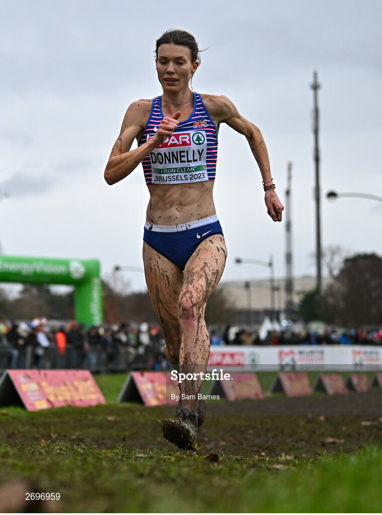 10 December 2023; Abbie Donnelly of Great Britain on her way to finishing third in the senior women's 9000m during the SPAR European Cross Country Championships at Laeken Park in Brussels, Belgium. Photo by Sam Barnes/Sportsfile