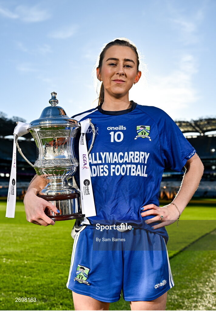 13 December 2023; In attendance at a photocall ahead of the currentaccount.ie All-Ireland Junior, Intermediate and Ladies Senior Club Football Championship Finals next weekend is Aileen Wall of Ballymacarbry, Waterford, with the Dolores Tyrrell Memorial Cup. The Intermediate and Senior Finals will be played at Croke Park on Saturday, December 16, with the Junior Final to be played at Parnell Park, Dublin, on Sunday December 17. Photo by Sam Barnes/Sportsfile